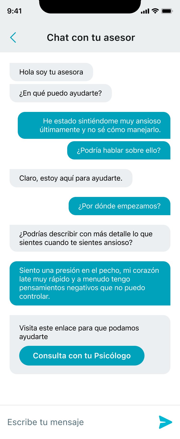 La aplicación no actúa como complemento de un servicio, sino como su núcleo operativo y experiencial, concentrando interacción, contenidos y seguimiento del bienestar emocional en un entorno de uso recurrente.