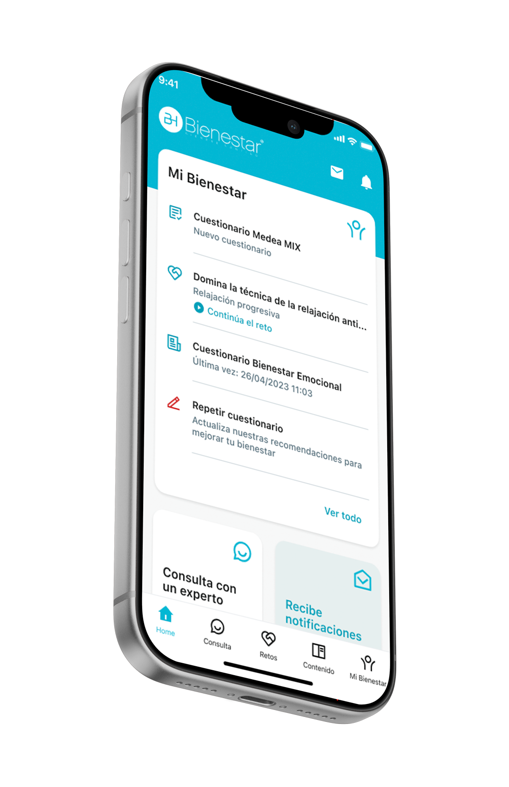 BH Bienestar es una plataforma de bienestar corporativo cuyo eje central es una App móvil nativa para Android e iOS, desarrollada por Si2 Soluciones como producto principal y canal directo de relación con las personas usuarias.