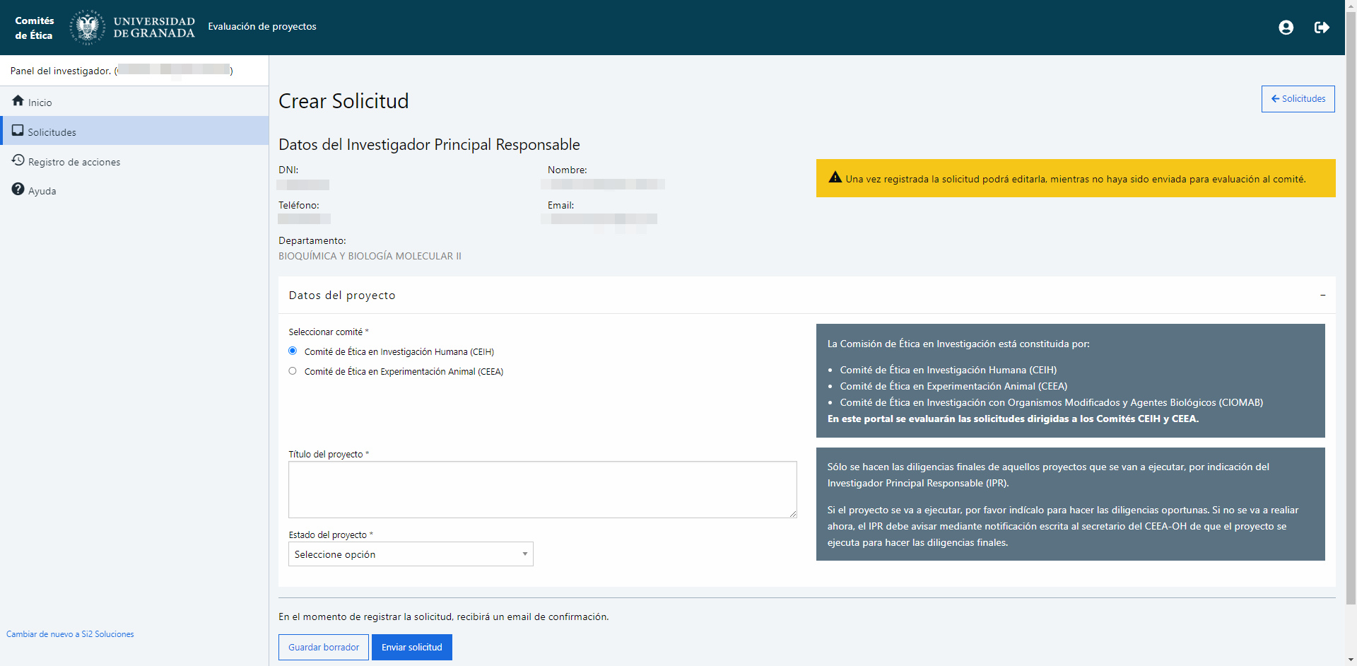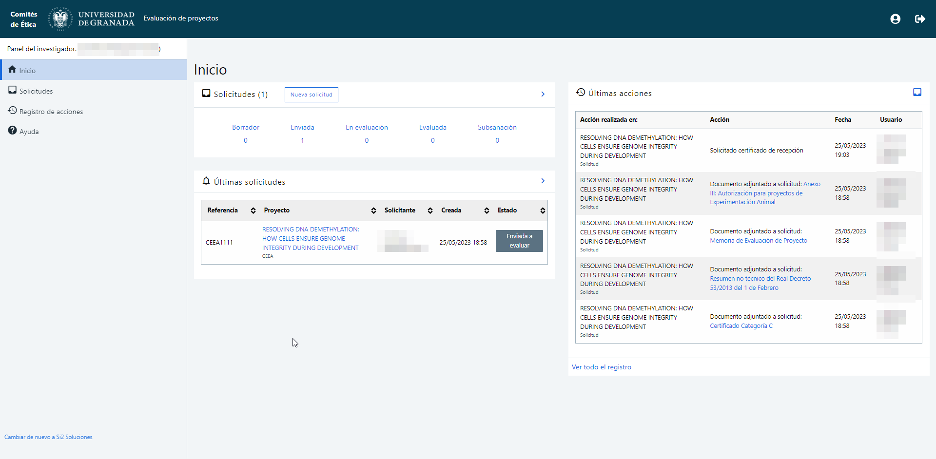 El Comité de Ética de la Universidad de Granada gestiona sus procesos mediante GESCOET, un producto propio de Si2 Soluciones diseñado para la digitalización completa de comités de ética en entornos universitarios y científicos.