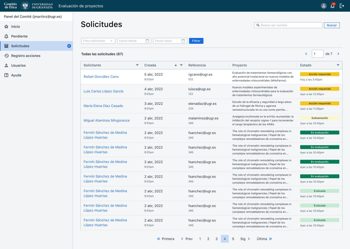 La evaluación ética es un proceso sensible, regulado y crítico para la actividad investigadora. Requería una solución específica que sustituyera la gestión manual y fragmentada por un sistema único, trazable y seguro.