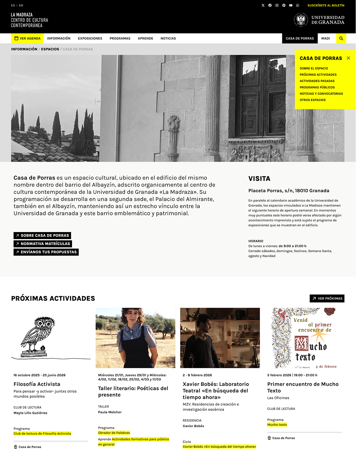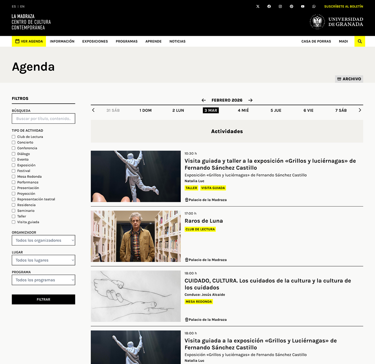 La Madraza UGR, a través de MADI – La Madraza Digital, articula su actividad cultural mediante un sistema digital propio desarrollado por Si2 Soluciones, donde la gestión avanzada de la agenda de eventos es el núcleo funcional.