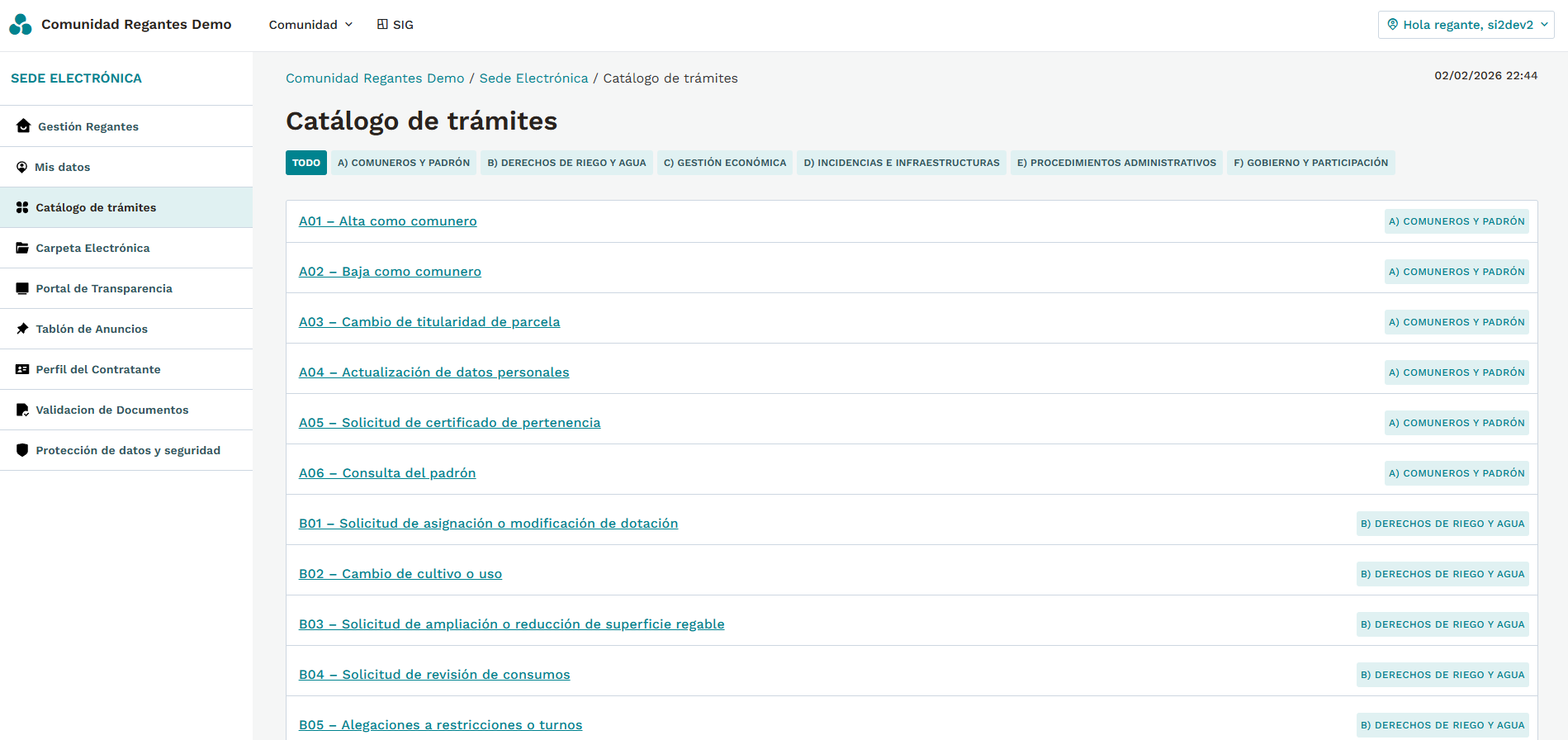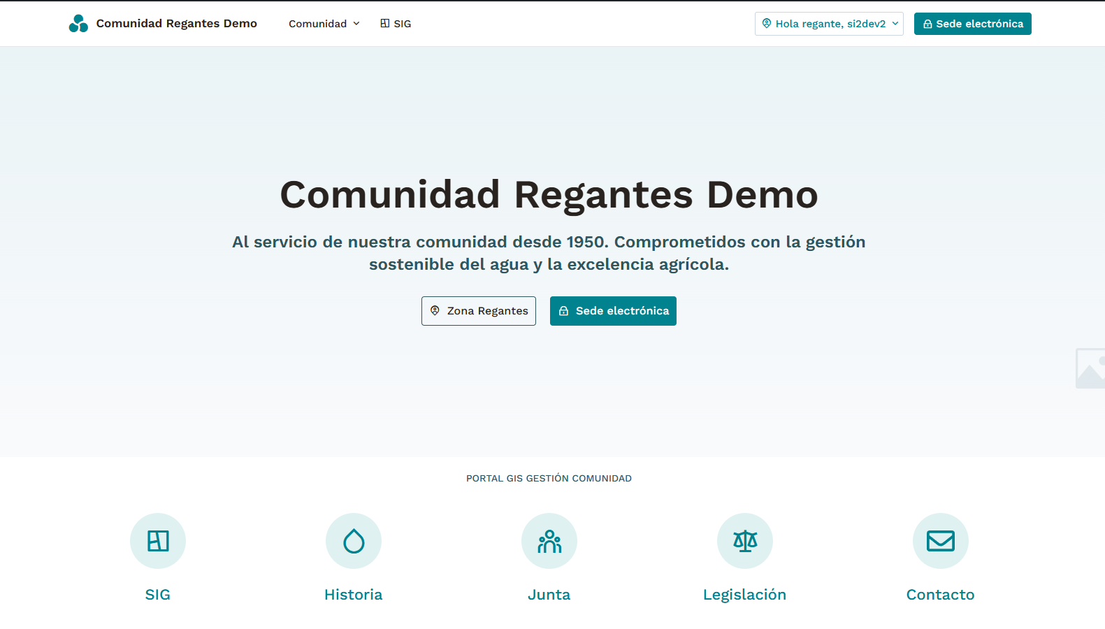 Gestión administrativa sencilla, control territorial del riego y tramitación electrónica completa, en una única plataforma. Desarrollo propio escalable con sistemas existentes o futuros de la comunidad.
