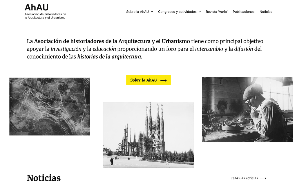 Desarrollo del sitio web institucional de la AhAU, enfocado en la difusión académica y cultural. La plataforma incluye secciones sobre la asociación, noticias, congresos, publicaciones y la revista Varia, con un diseño claro y accesible que refuerza la identidad académica de la institución.