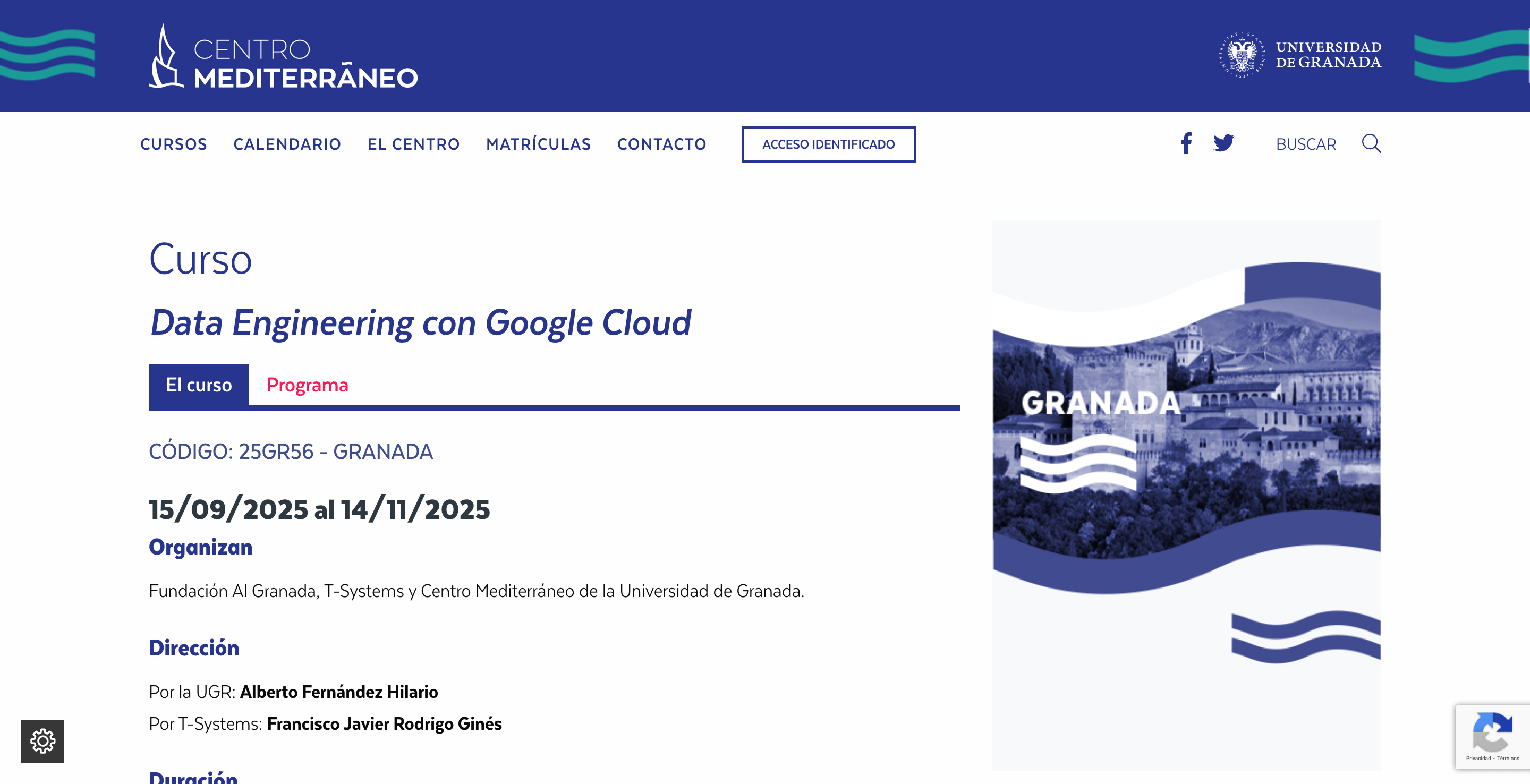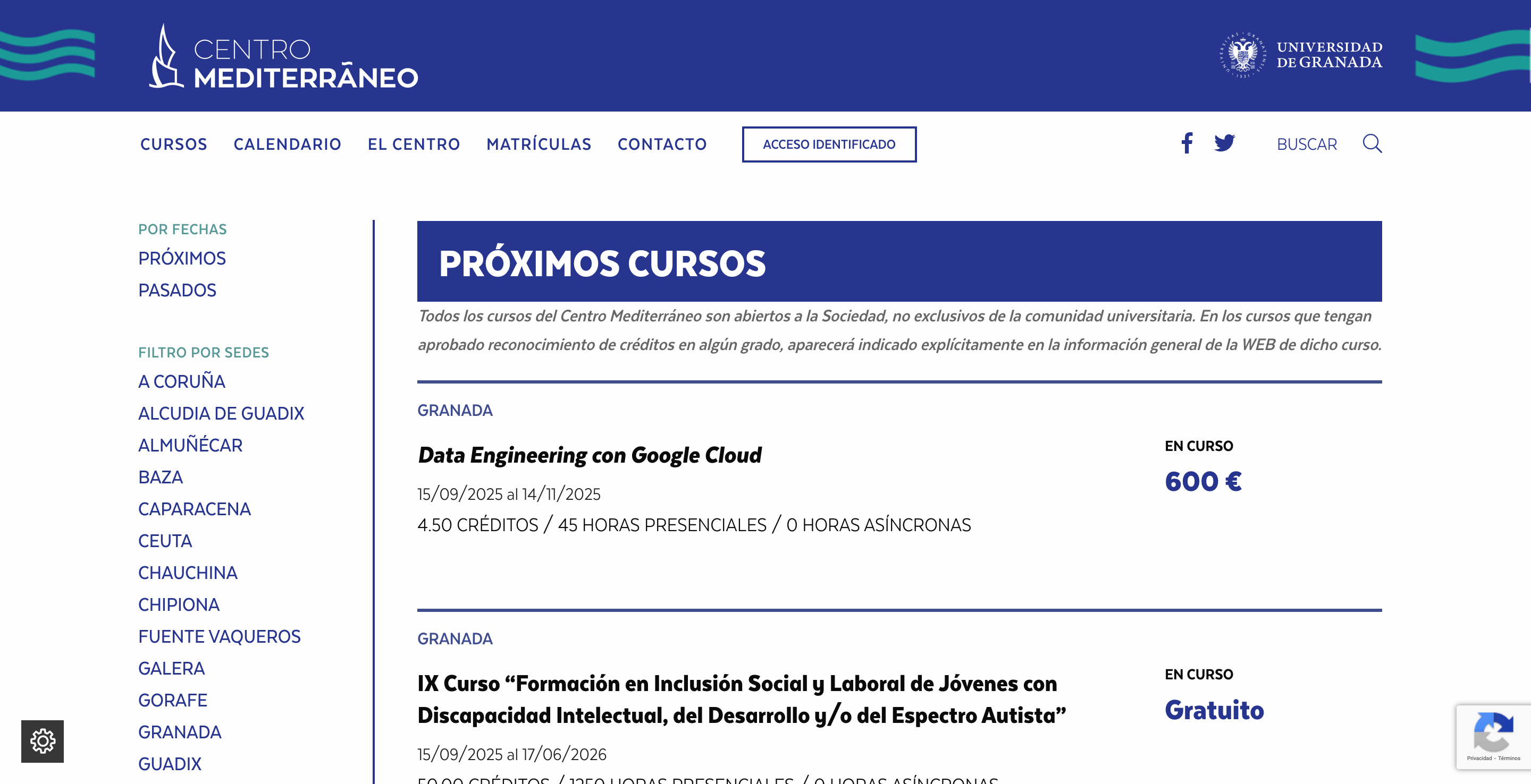 - Información sobre cursos próximos, distribuidos en múltiples sedes (Granada, Ceuta, Melilla, online…) con calendario actualizado.