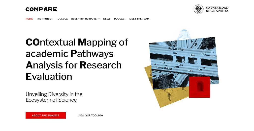 Desarrollo del sitio web oficial del proyecto COMPARE, una iniciativa internacional dedicada a repensar los criterios de evaluación en la ciencia, valorando la diversidad de trayectorias académicas y perfiles investigadores. La web integra secciones sobre el proyecto, herramientas interactivas (“toolbox”), publicaciones, novedades y equipo, todo con un diseño limpio que facilita el acceso a datos, resultados e informes científicos.