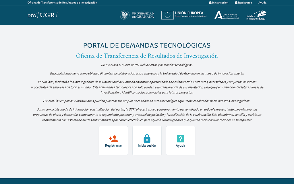 Desarrollo del sitio web institucional de Retos I+D+i UGR, una plataforma impulsada por la Oficina de Transferencia de Resultados de Investigación (OTRI) de la Universidad de Granada. Este portal facilita la colaboración entre la universidad y empresas mediante la publicación de retos tecnológicos y demandas de innovación. Permite a los investigadores de la UGR identificar oportunidades de colaboración y a las empresas plantear sus necesidades tecnológicas, promoviendo la transferencia de conocimiento y la innovación abierta. La plataforma incluye funcionalidades como registro de usuarios, publicación de ofertas y demandas, y un sistema de alertas automatizadas para mantener a los usuarios informados.